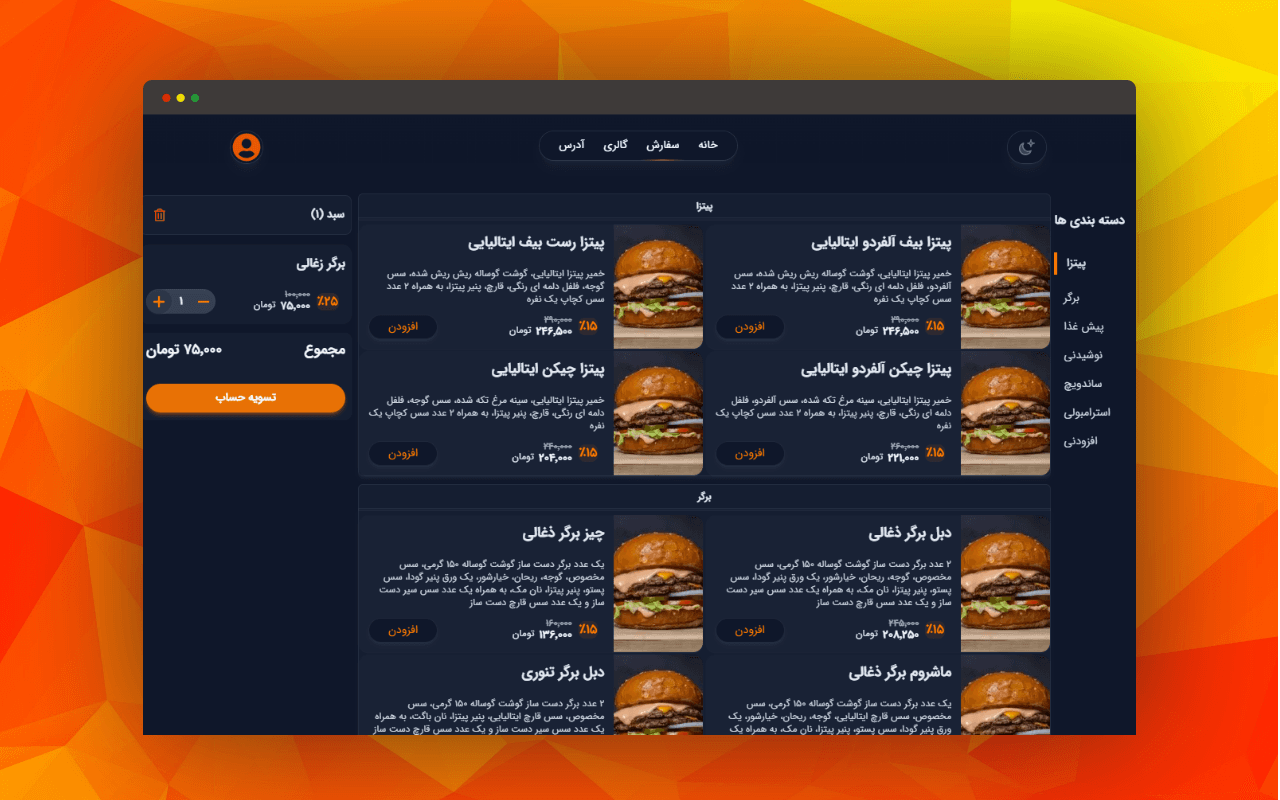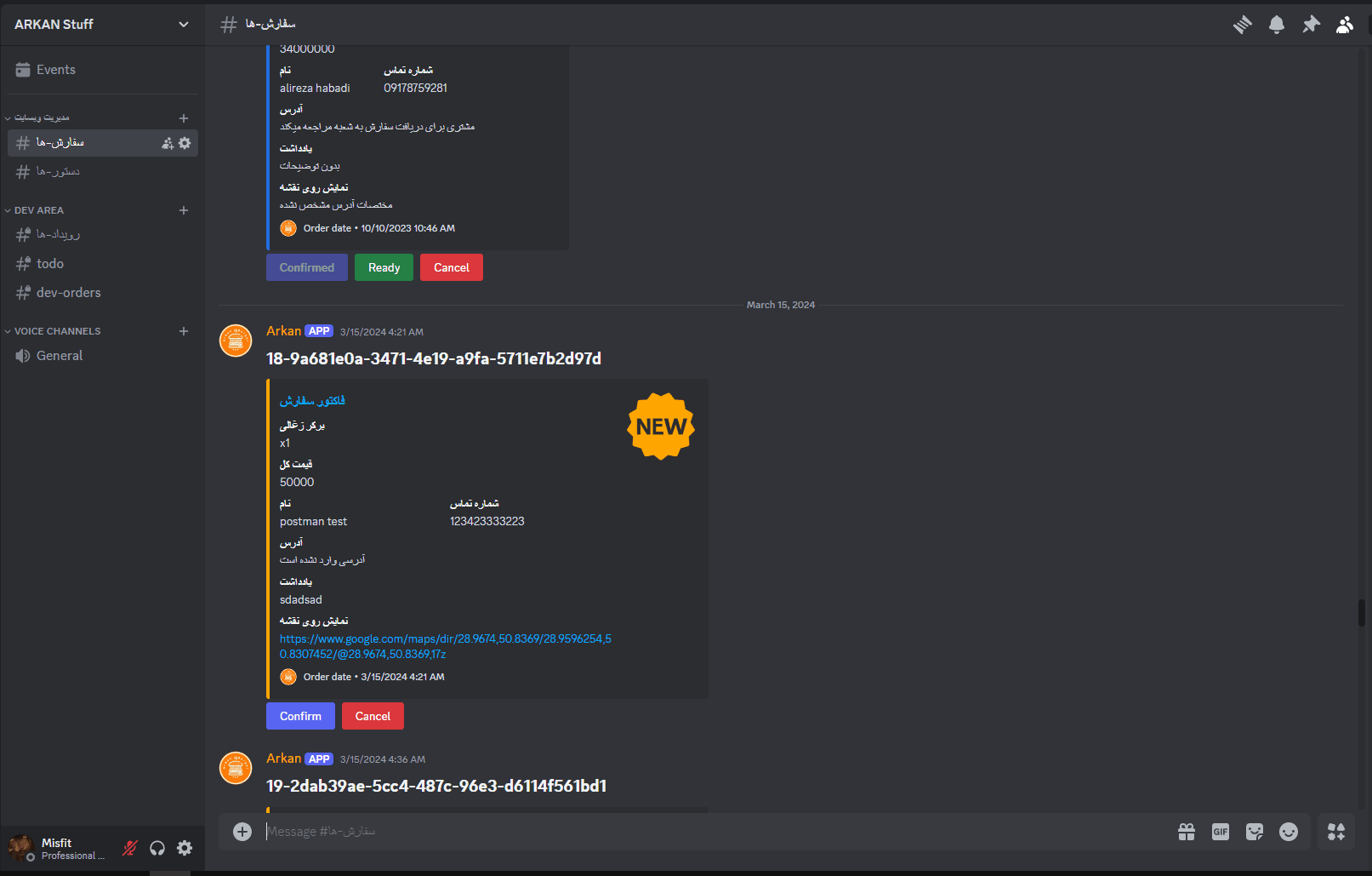 The app is hosted on Liara. Additionally, it’s set up to send updates to Discord whenever a new order is made and notifies users via SMS.