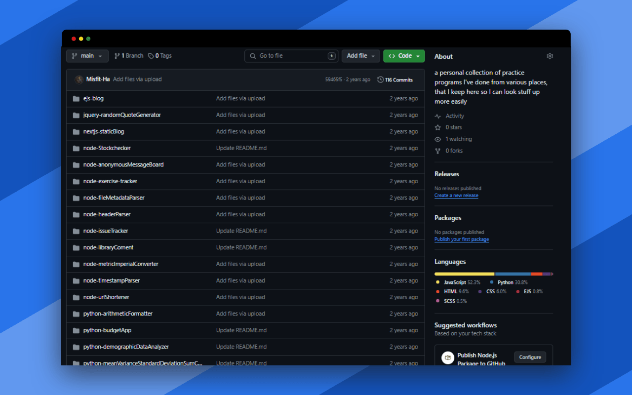 A while ago I went through all the freeCodeCamp challenge projects. While individually small, these projects helped me learn various languages and frameworks through practical implementation.
